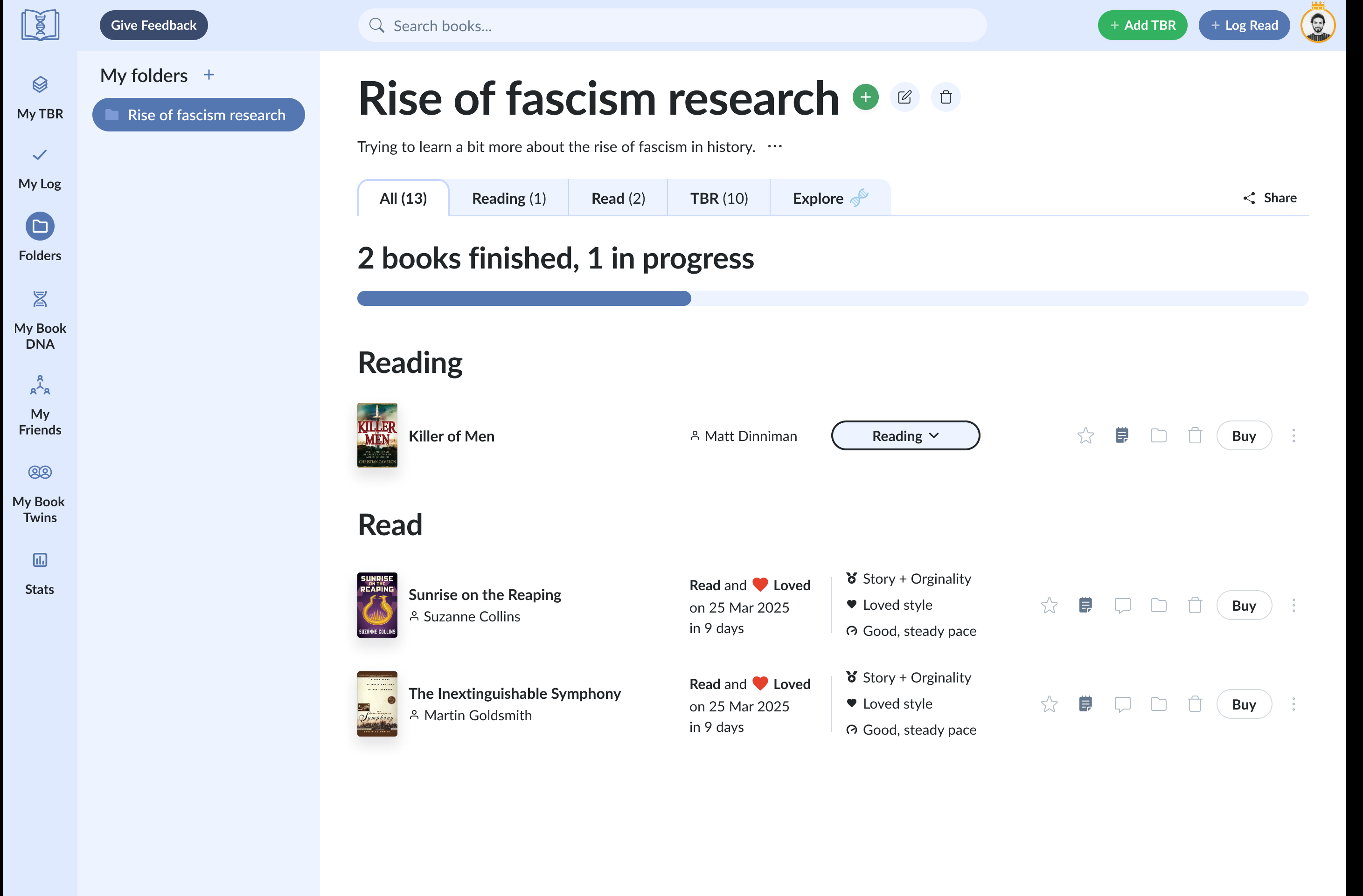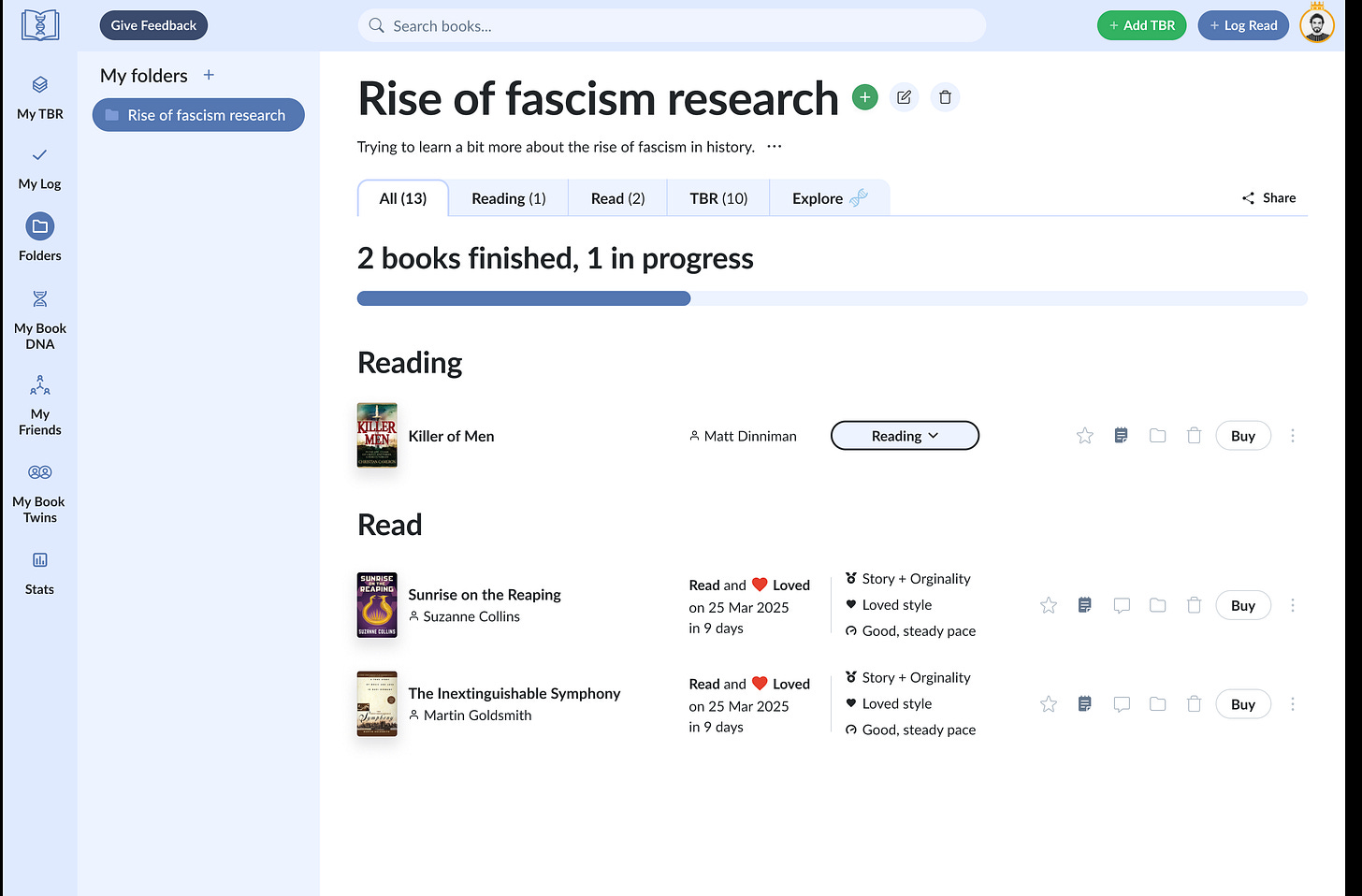 Join the rebellion and help me create a smarter, more personal way to manage your reading life, with recommendations shaped by your Book DNA. Think Goodreads, but rebuilt for readers who want a private space to track what they read, keep notes, and get truly personalized book recommendations (like Pandora or Spotify for books). It is also designed from the ground up to help authors. We are on track to start testing the beta in February (apply here to be a beta tester).